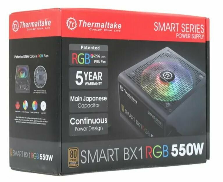 Блок питания Thermaltake Smart BX1 RGB/550W/Non Modular/Fan Hub/Single Voltage/Analog/80 Plus Bronze/EU/JP Main CAP/All Flat Cables