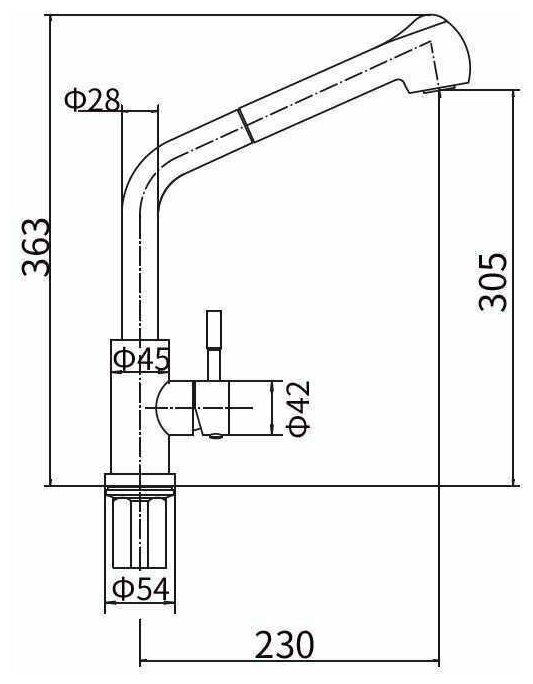 A56009 (смес. кухня хром . с вытяж лейкой, Нержавейка 304, ф35)