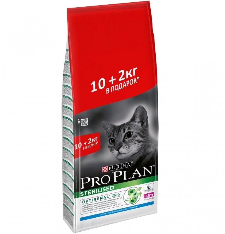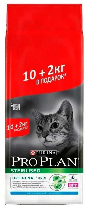 Купить Сухой корм для стерилизованных взрослых кошек Pro Plan Sterilised OptiRenal, с кроликом 12 кг (2 кг в подарок)