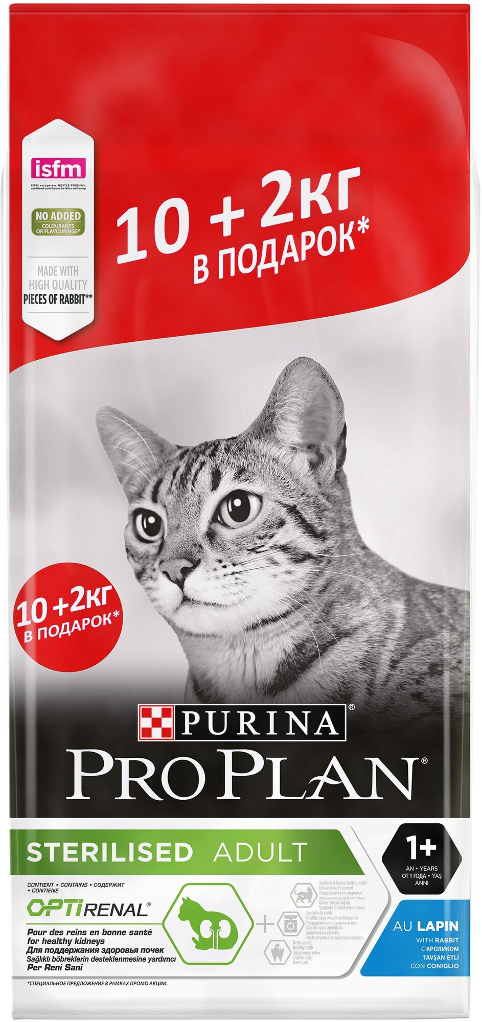 Промопак: Сухой корм Pro Plan для стерилизованных кошек и кастрированных котов, с кроликом, Пакет, 10+2кг