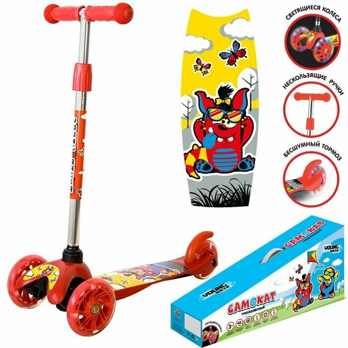 Самокат детский Young Racer 3-х колесный, красный 120 мм, свет, до 40 кг (А5-6-1)