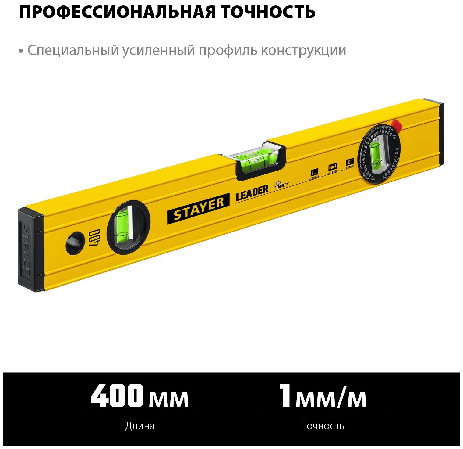 Строительный фрезерованный уровень STAYER Leader 400 мм (3466-040_z01)