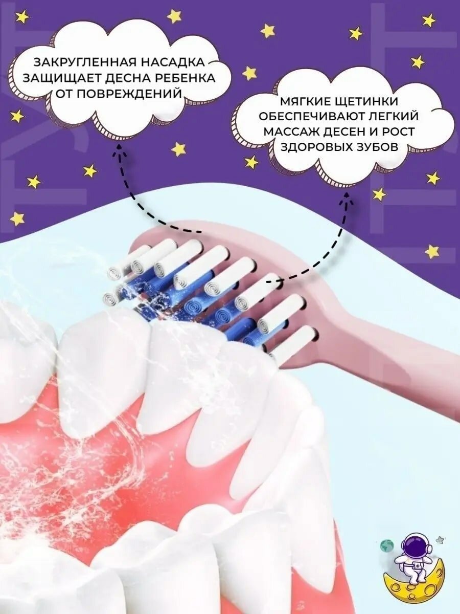 Купить Детская Электрическая зубная щетка Beautiful Smile, для детей 3-7 лет, с 5 насадками, и батарейкой в комплекте - Космонавт