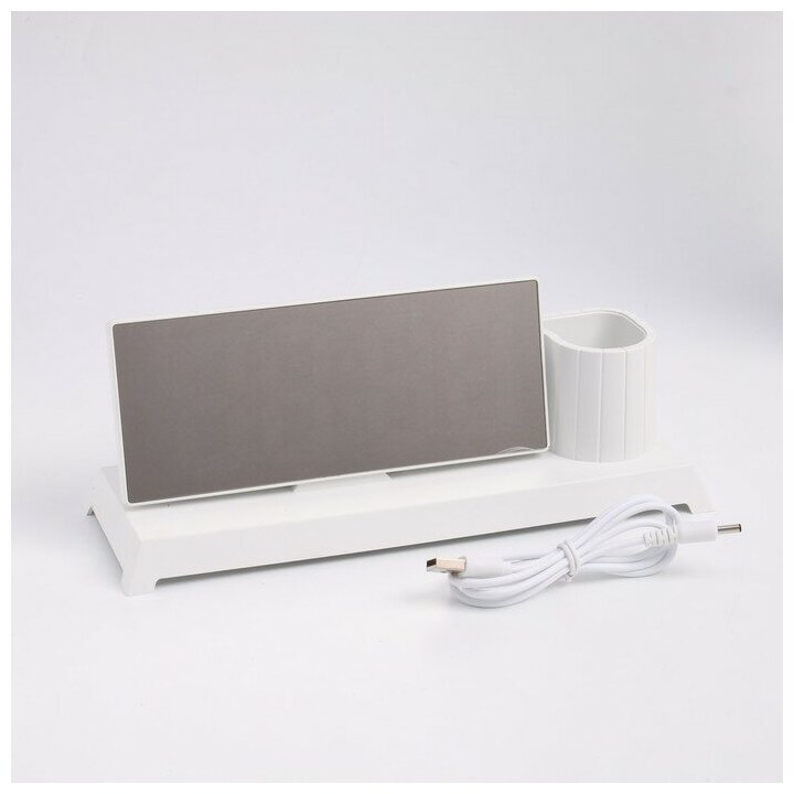 Часы настольные электронные, с карандашницей, белая индикация, 11 x 25 см, от USB (1 шт.) интересное: