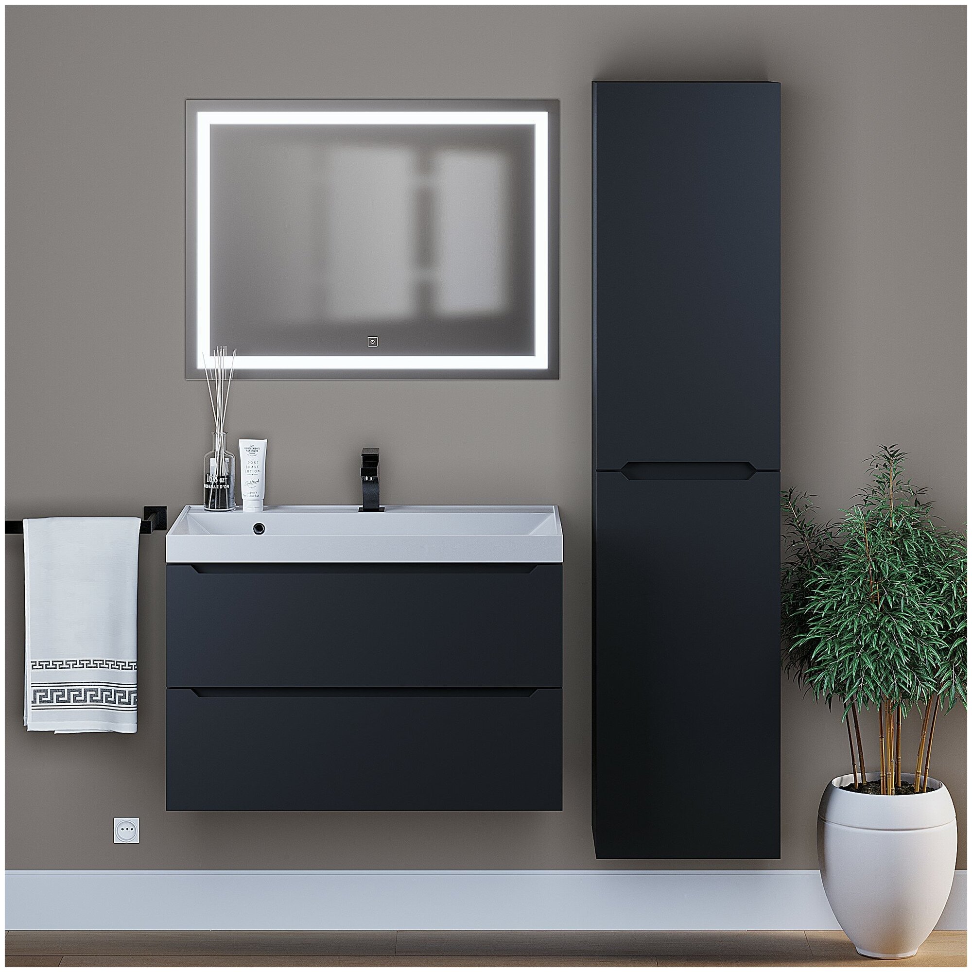 Тумба с раковиной Uperwood Tanos 80 см, подвесная, черная с белой раковиной Classic new