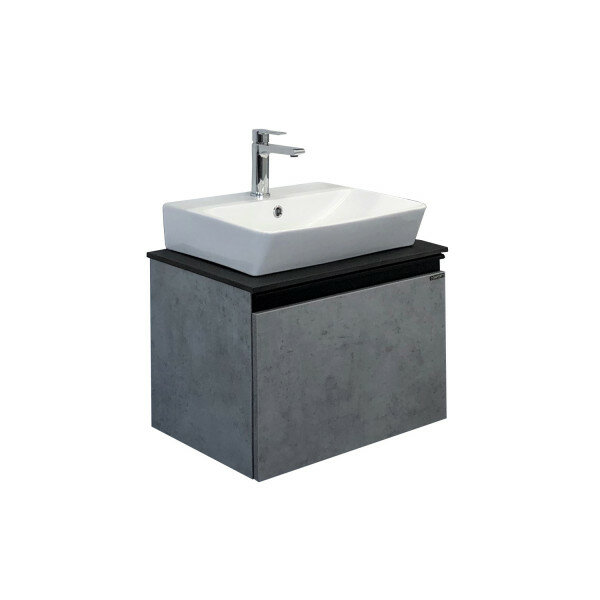 Тумба-умывальник "Эдинбург-60" бетон светлый с черной столешницей с отверстием под смеситель №12, с раковиной COMFORTY 9111