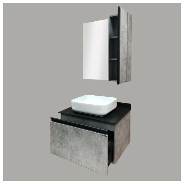 Тумба-умывальник "Эдинбург-60" бетон светлый с черной столешницей с отверстием под смеситель №12, с раковиной COMFORTY 9111