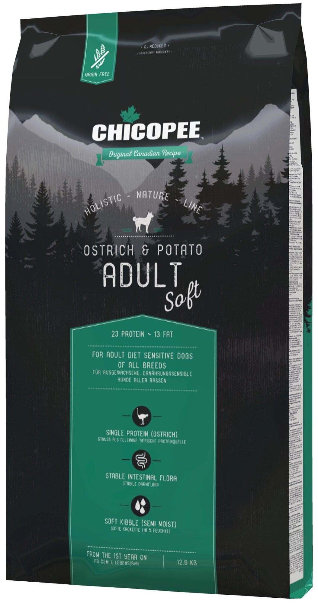 Купить CHICOPEE HOLISTIC NATURE LINE SOFT ADULT OSTRICH & POTATO беззерновой полувлажный для взрослых собак всех пород со страусом и картофелем (12 кг)