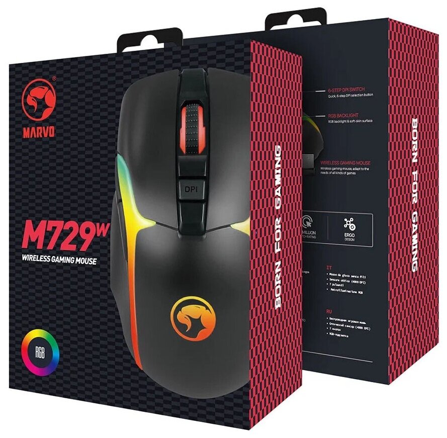 Мышь беспроводная Marvo M729W gaming mouse с подсветкой интересное: