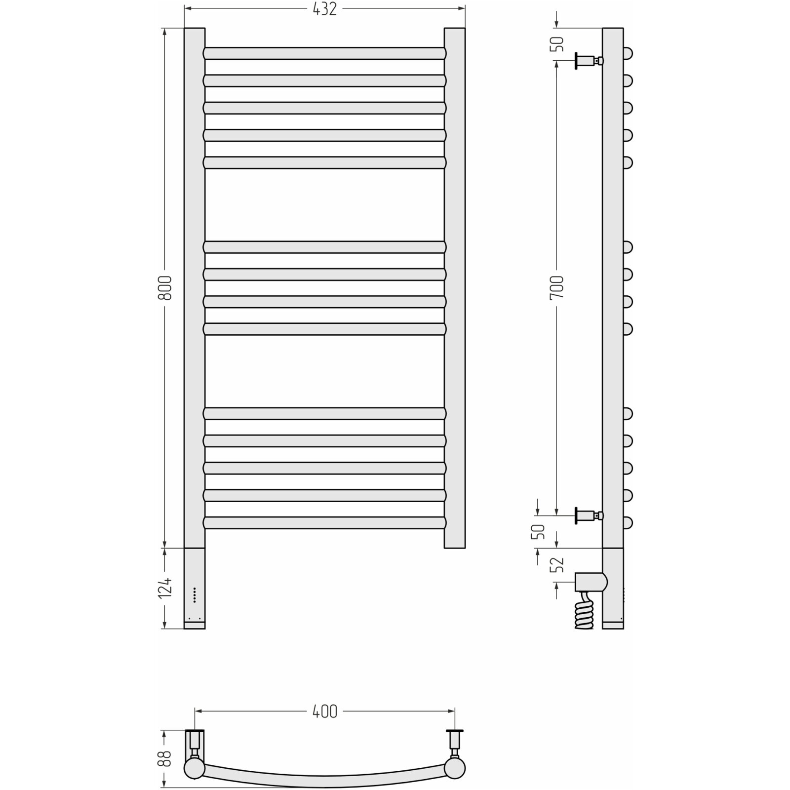 Полотенцесушитель электрический Сунержа Богема 3.0 выгнутая 800х400 МЭМ левый Матовый белый