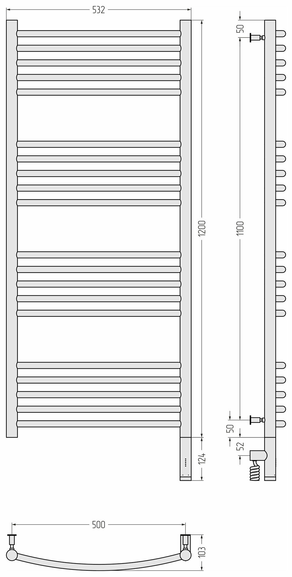 Электрический полотенцесушитель Сунержа Богема 3.0 выгнутая 1200х500 00-5803-1250