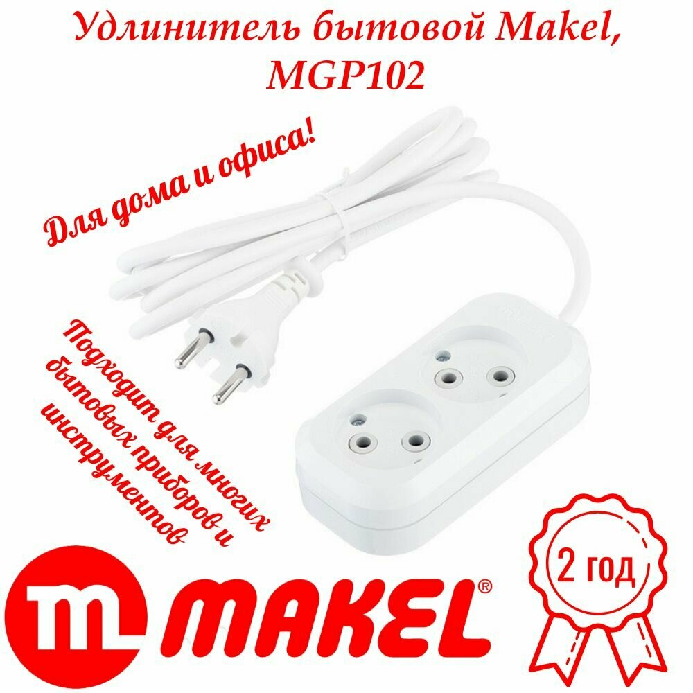 Удлинитель 2х2м без заземл. 10А IP20, MAKEL MGP102 (1 шт.)
