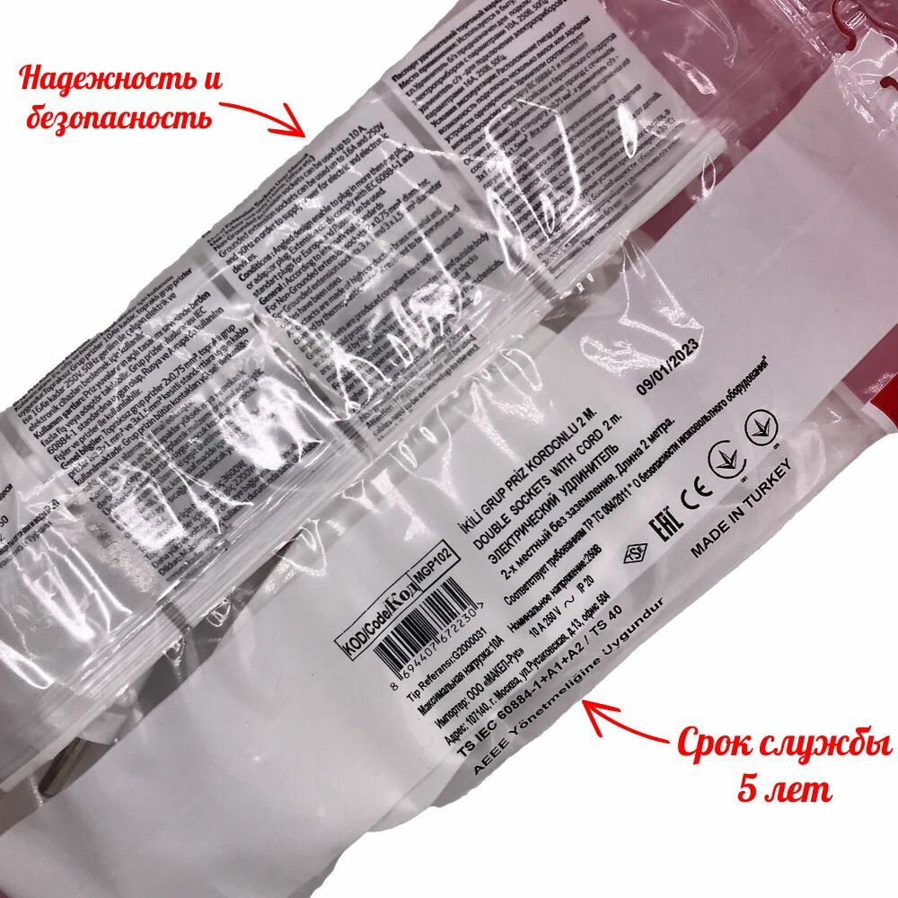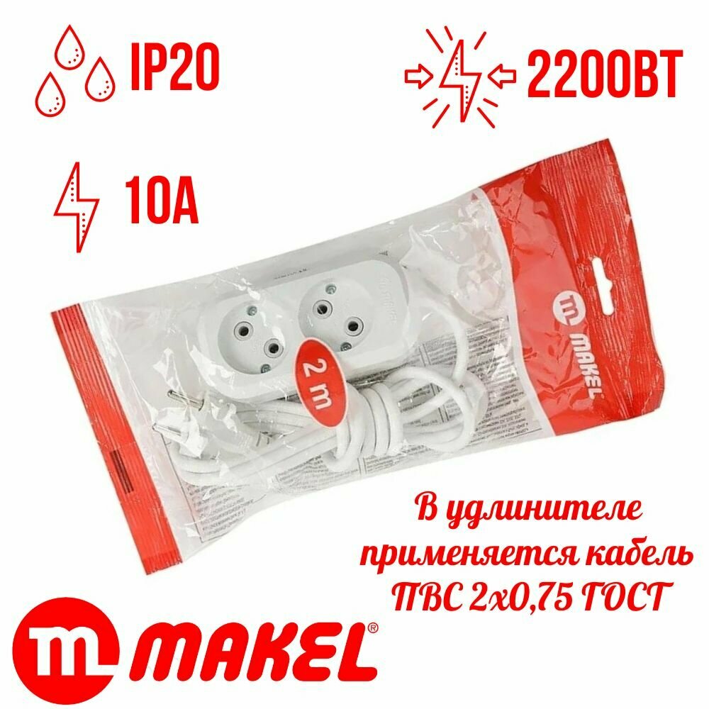 Удлинитель Makel 2 м 2 гнезда без заземления электрический белый, MGP102 интересное: