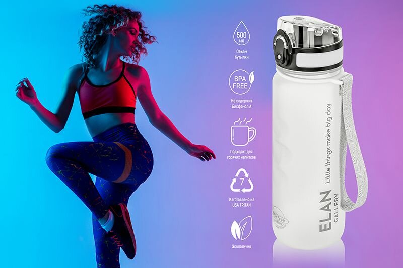 Бутылка для воды / спортивная бутылка / питьевая бутылка / для холодных и горячих напитков 500 мл 6,5х6,5х23 см Elan Gallery Style Matte, белая интересное: