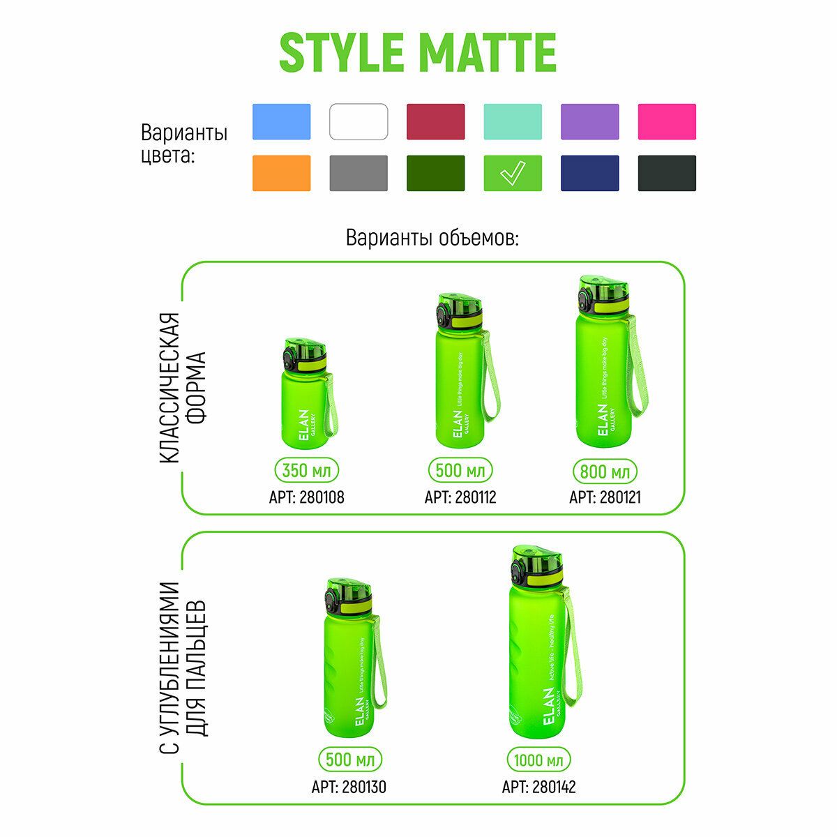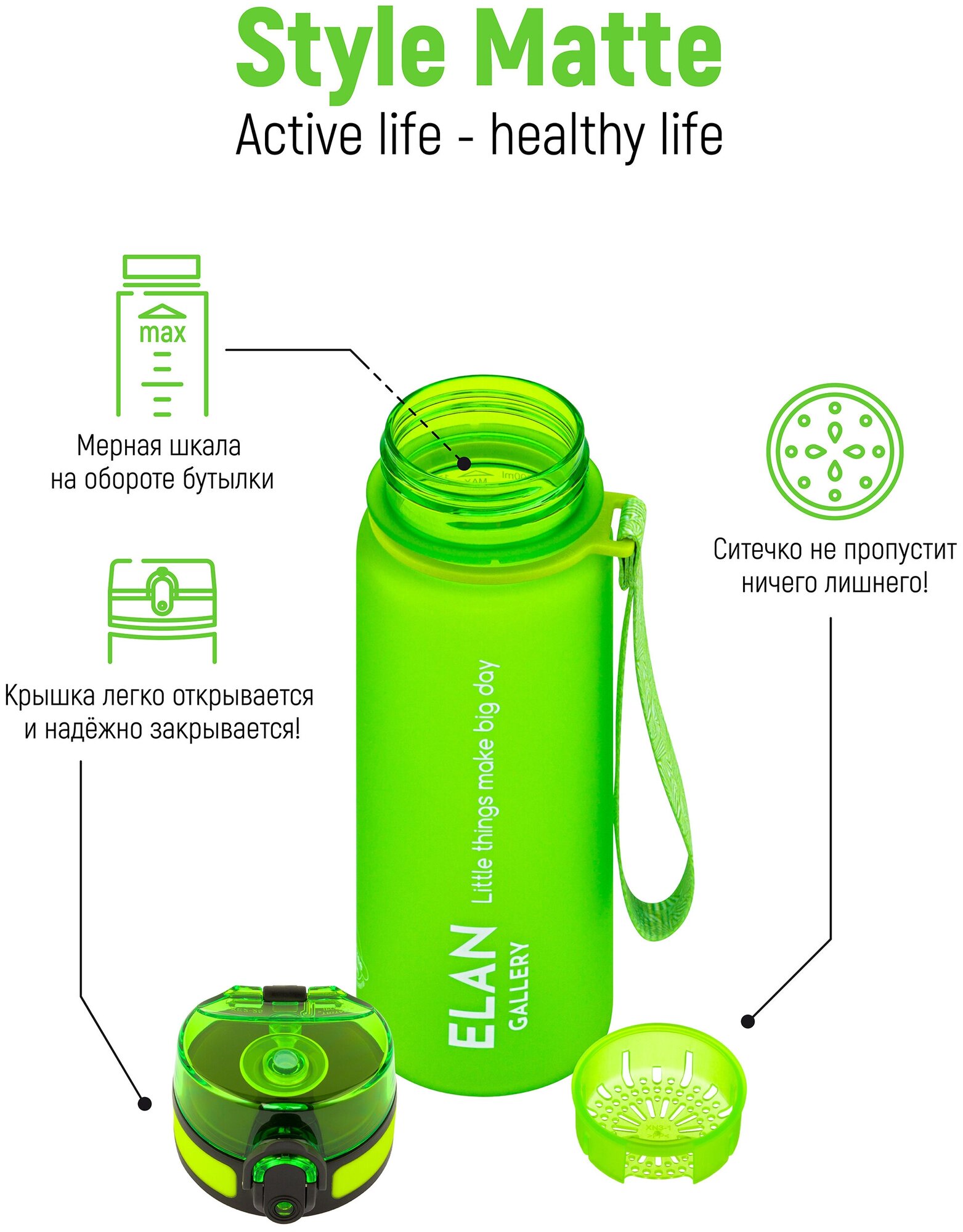 Бутылка для воды ELAN GALLERY Style Matte, ярко-зеленая, 500 мл