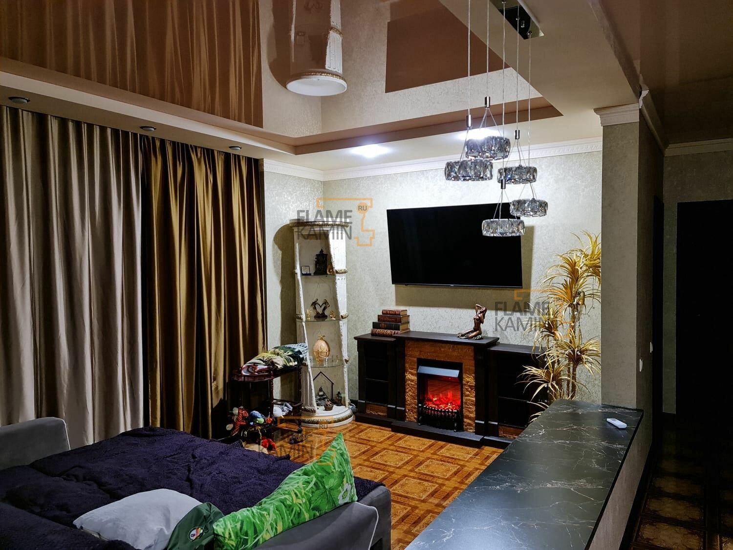 Электрокамин FlameKamin Моника Lux BL M4 с очагом Fobos (камин электрический с полками) интересное: