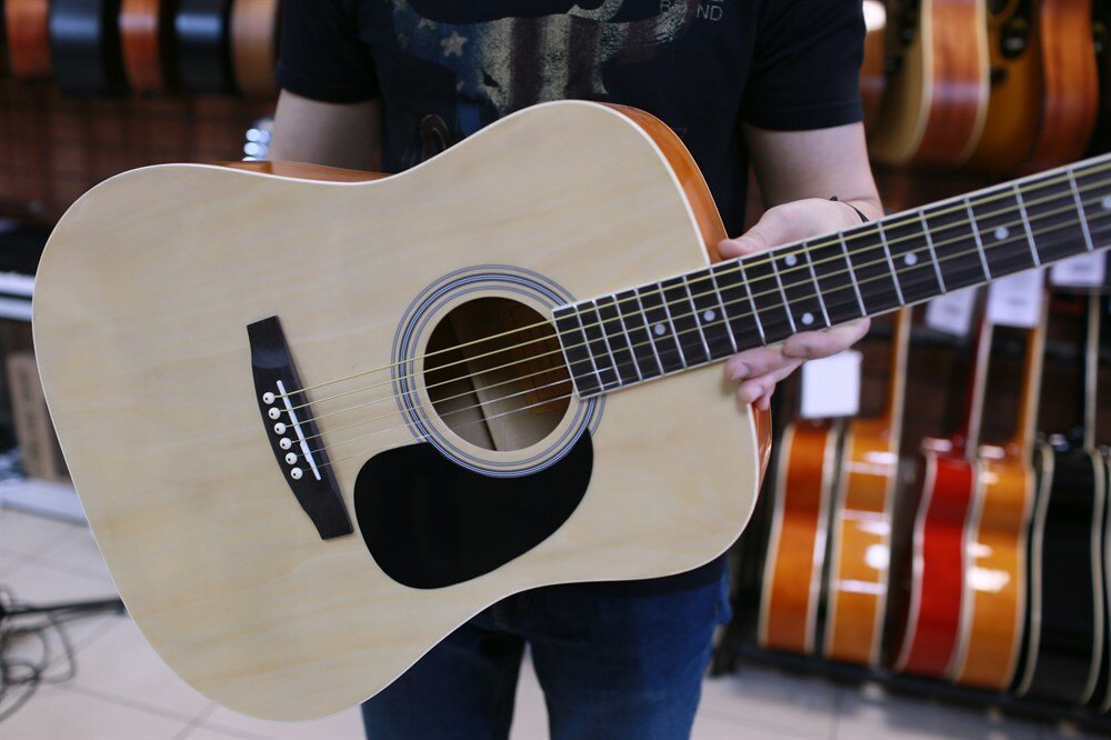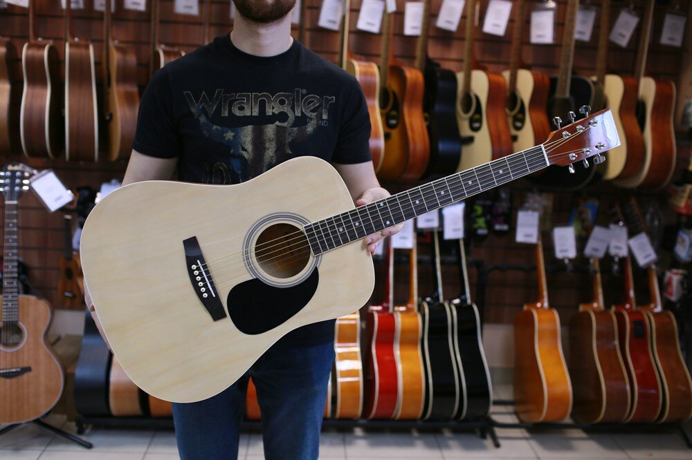 | Плюсы: | Отличный звук для гитары начинающему за небольшую сумму! Хорошее качество. Красивая. Надёжные металлические колки. |