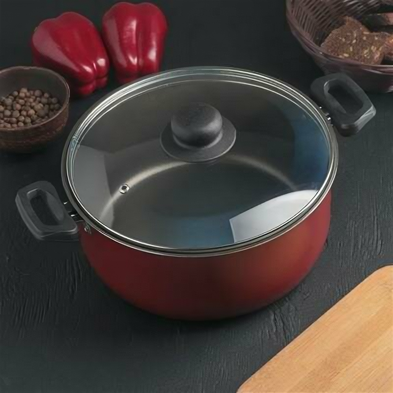 Кастрюля «Эксперт», 4,5 л, d=24 см, стеклянная крышка, антипригарное покрытие, цвет бордовый