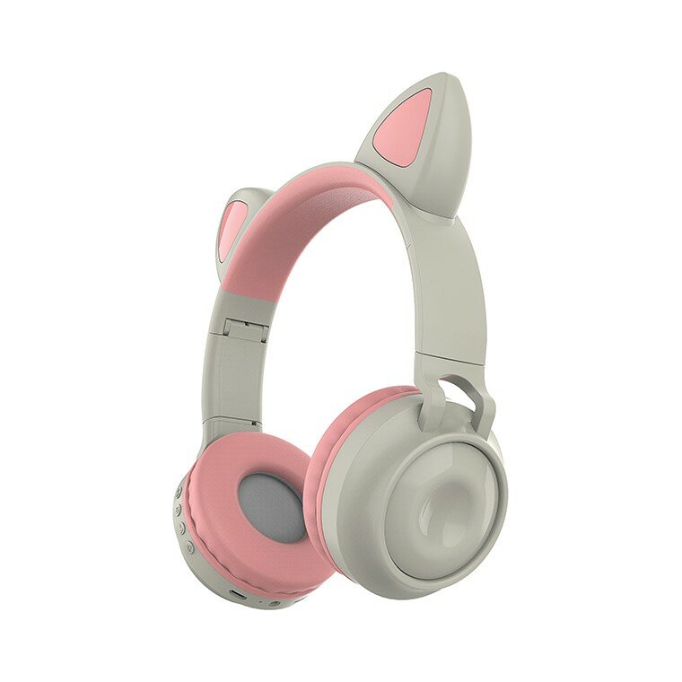 Гарнитура-Bluetooth Party Cat ВТ 0027 (бежево-розовая) c подсветкой, FM-радио, MicroSD, накладная, B .