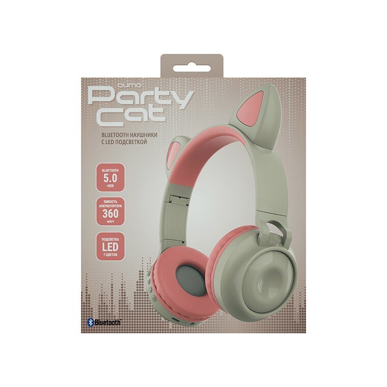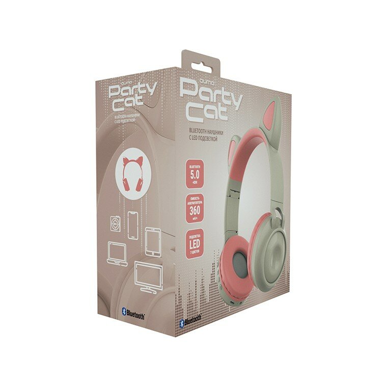 Наушники Qumo Party Cat ВТ-0027 беспроводные, с микрофоном, Bluetooth, бежево-розовый интересное: