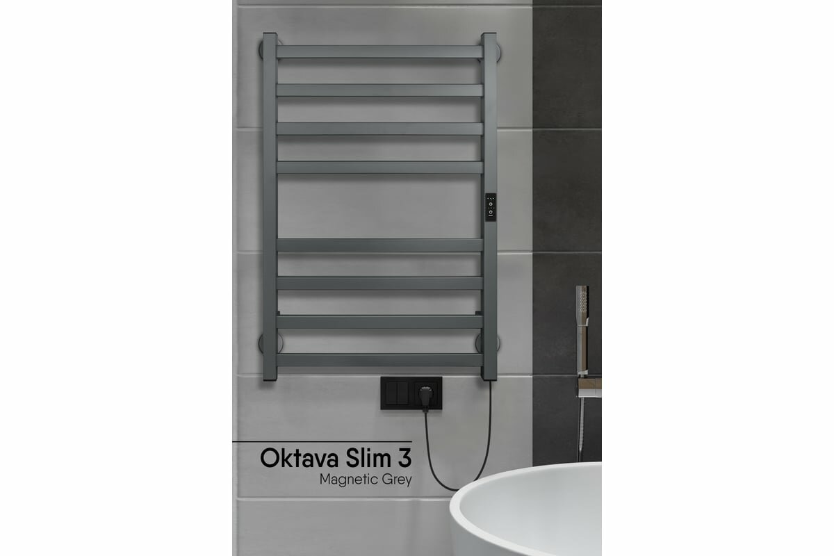 Полотенцесушитель электрический INDIGO Oktava Slim 3 80/50 таймер, скрытый монтаж, универсальное подключение, прямой провод, Magnetic Grey
