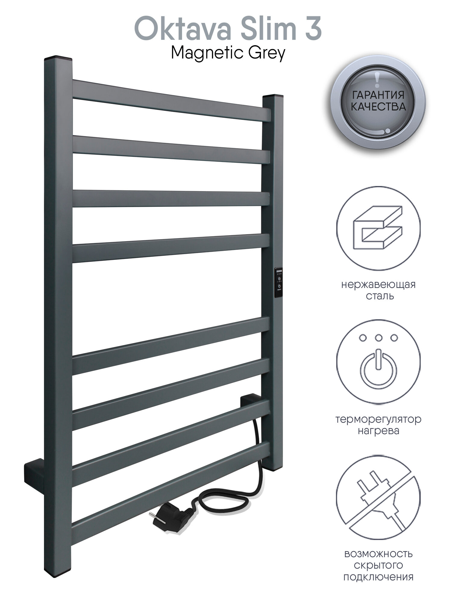 Купить Полотенцесушитель электрический IND (INDIGO) Oktava Slim 3 80/50 Magnetic Grey (таймер, скрытый монтаж, универсальное подключение: левый/правый)