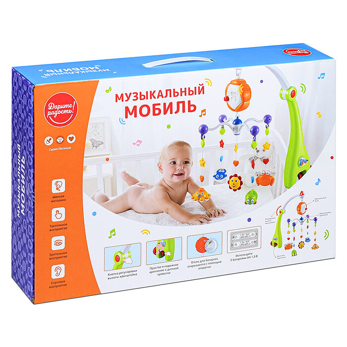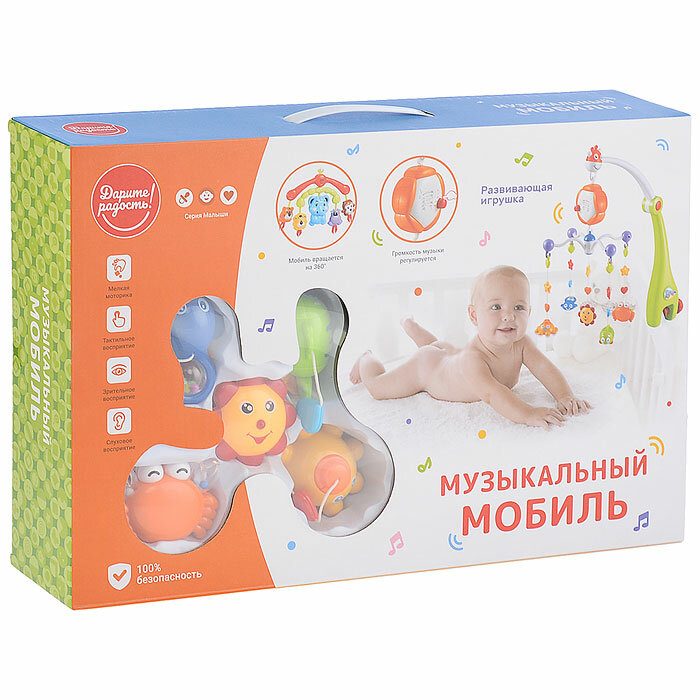 | Комплектация | В наборе: - складной кронштейн с фиксатором (высотой 48 см.). - музыкальный модуль. - подвеска с 5 игрушками-погремушками (диаметром 29 см.) |