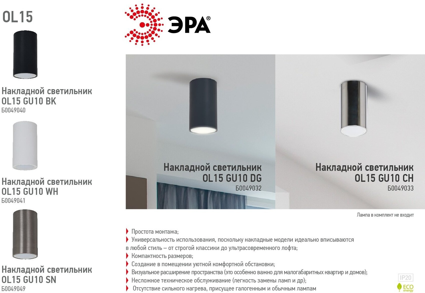 Светильник накладной OL15 GU10 WH IP20 белый ЭРА