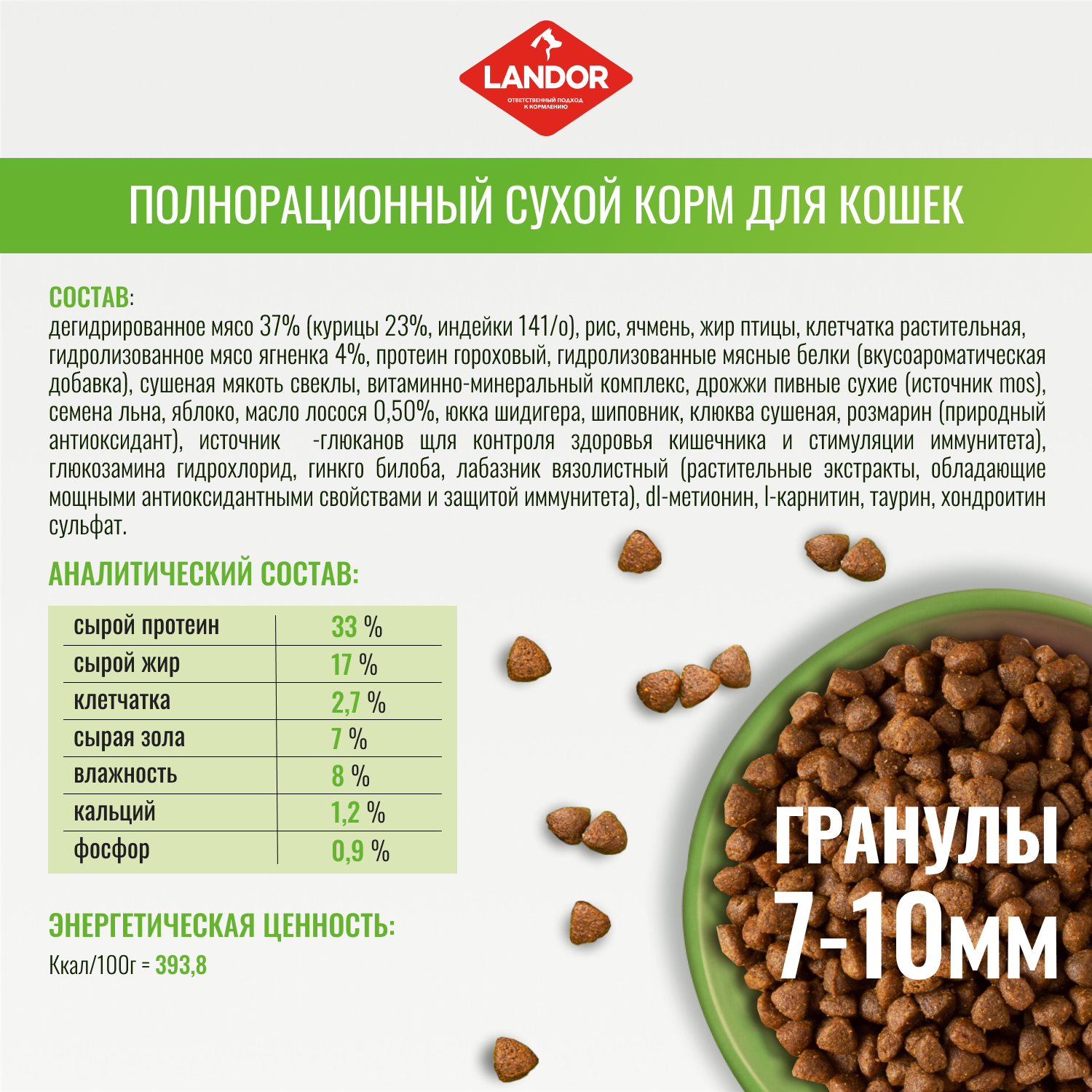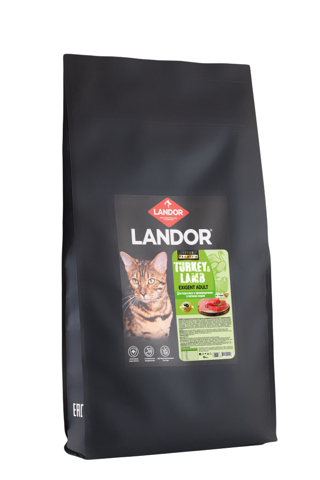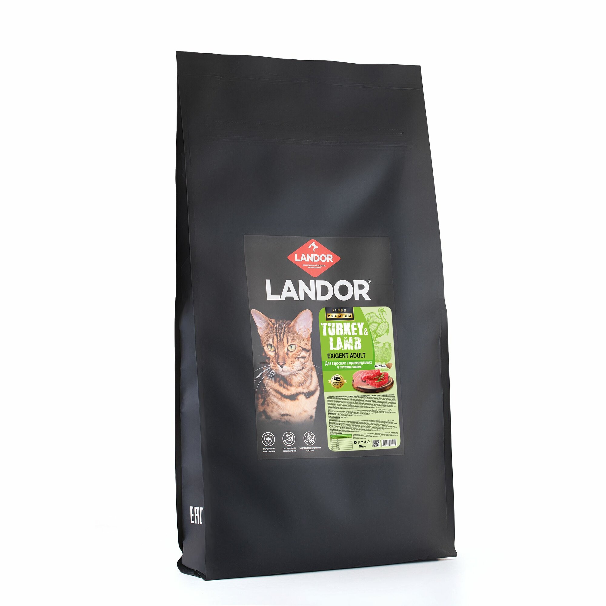 Купить Landor Cat Exigent Adult сухой корм для кошек привередливых к еде Индейка и ягненок, 10 кг.