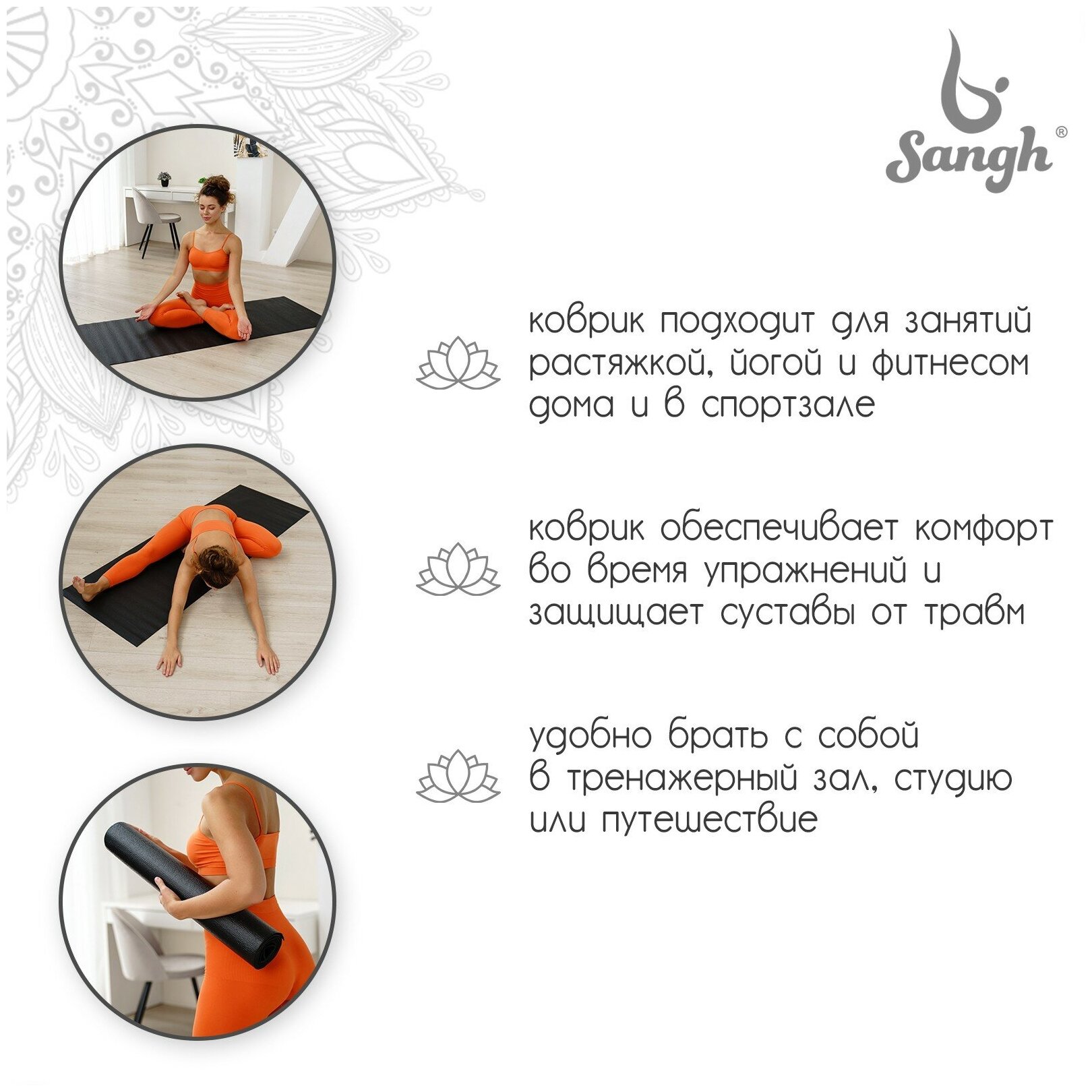 Sangh Коврик для йоги 173 х 61 х 0,3 см, цвет чёрный