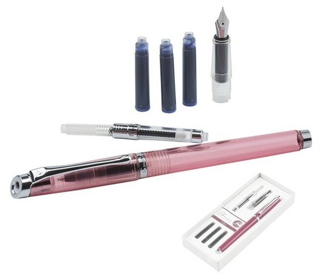 Набор PIERRE CARDIN I-SHARE: ручка-роллер розового цвета, сменная насадка с пером размера М, конвертер, 3 чернильных картриджа синего цвета
