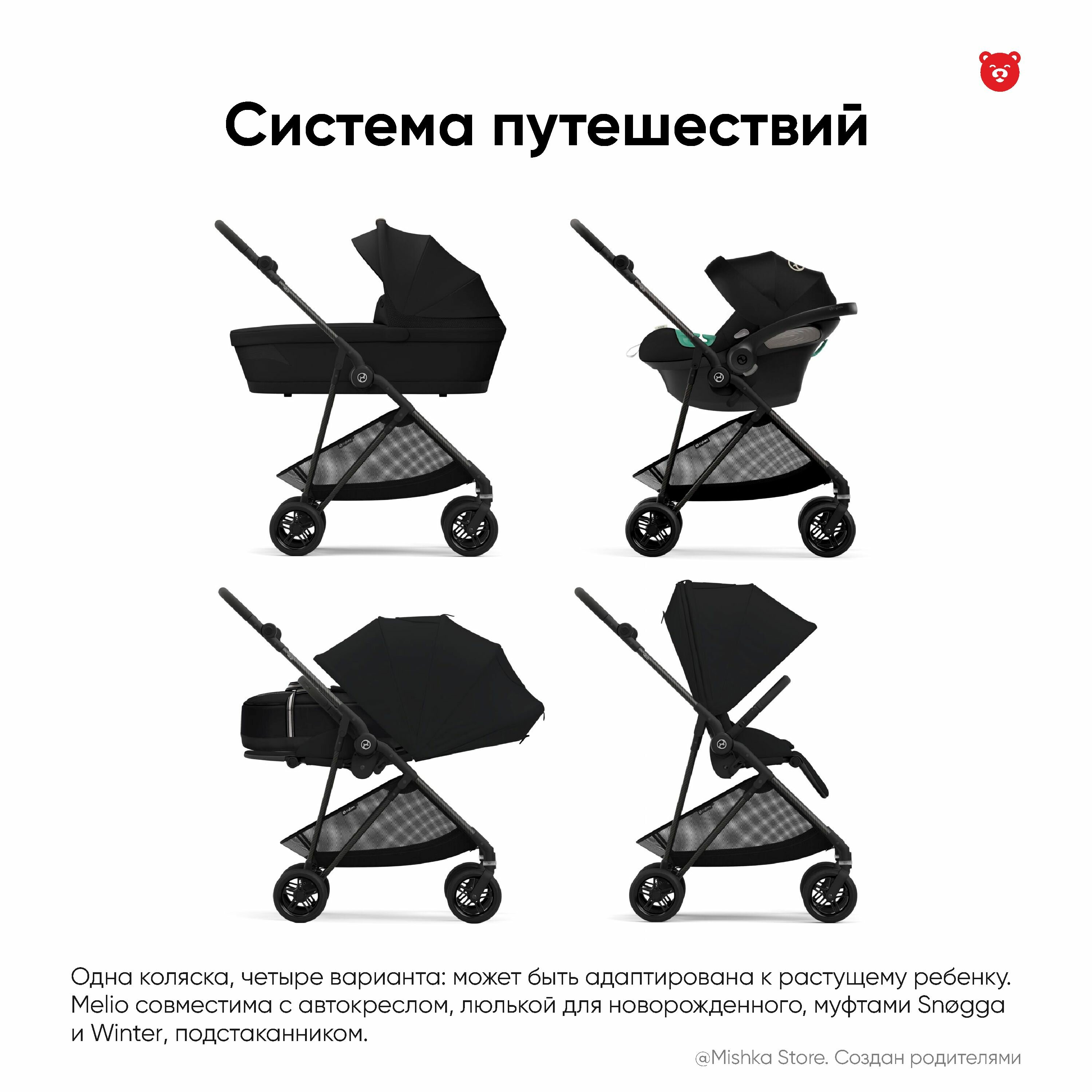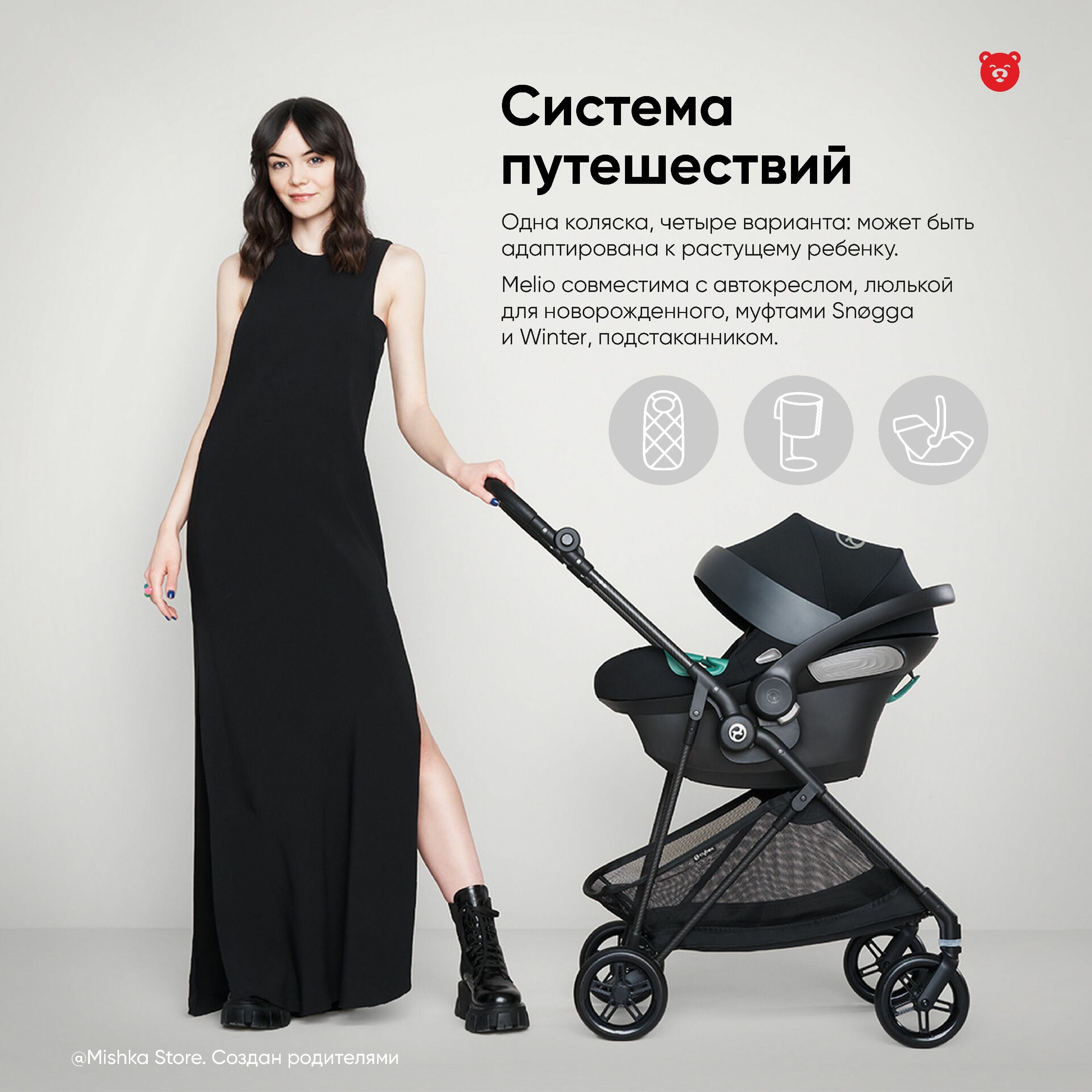 Cybex Детская коляска Melio 2, Carbon Deep Black без дождевика интересное: