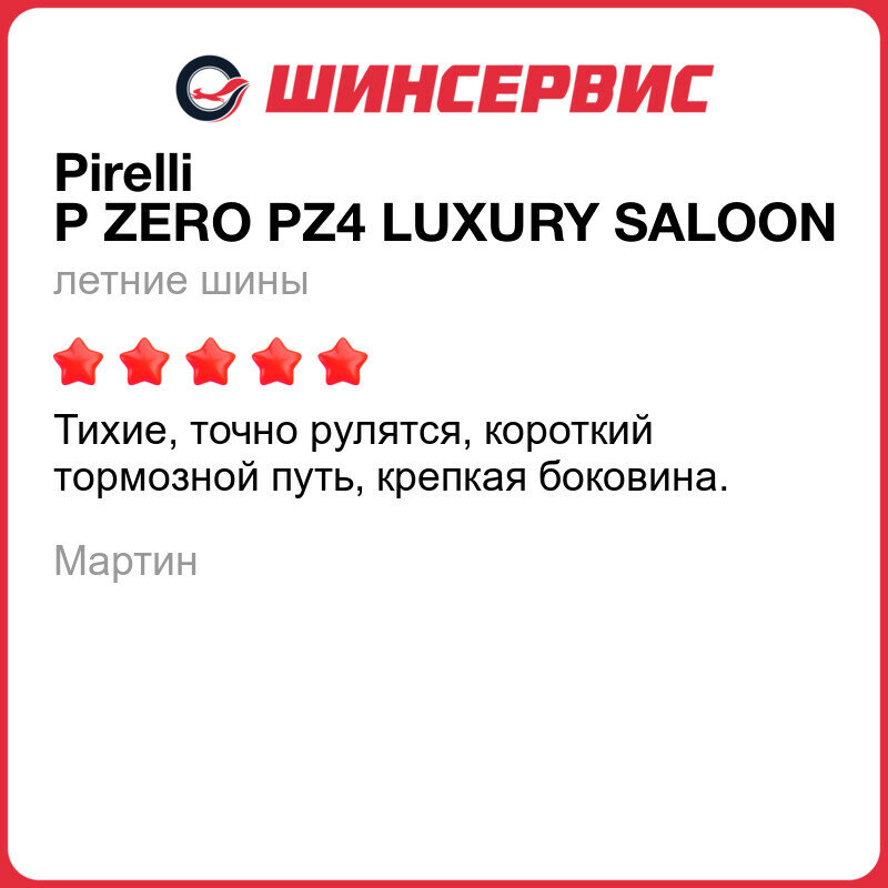 | Отзыв: | Похожие шины (просто P Zero) были в стоке на авто, прооехал на них три лета, очень нравились по своим динамическим характеристикам. В этом году поставил новые, судя по всему немного обновили и улучшили старую модель. Показалось, что добавилось мягкости хода, хоть размерность осталась штатная. При этом в динамических характеристиках не потерял. Отдельно хочу отметить прекрасное поведение на мокрой дороге, а также то, что колейность держат очень хорошо. При движении по КАД на скорости это очень ценное свойство |