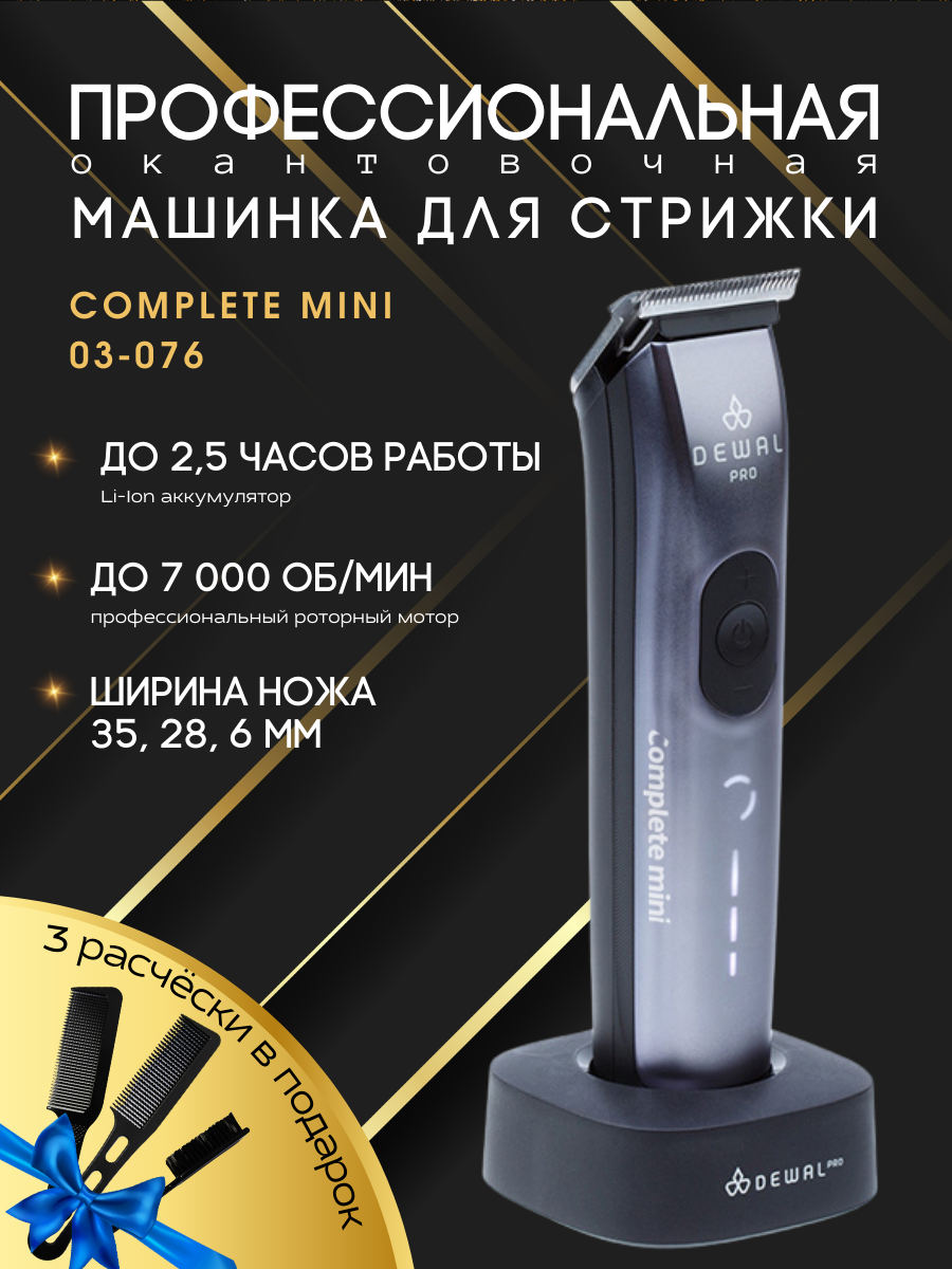 Машинка для стрижки окантовочная Dewal Pro Complete Mini, аккум/сетевая, 4 насадки