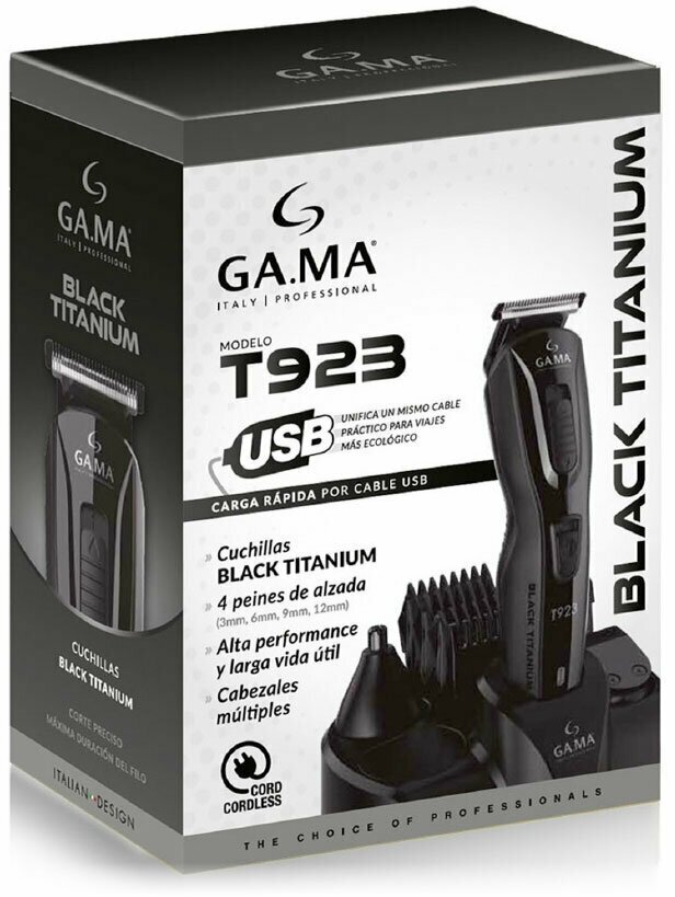 Машинка для стрижки волос GA.MA Black Titanium T923, многофункциональная, аккумуляторная