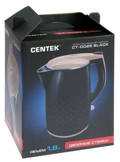 Чайник электрический 1.8Л 2000ВТ диск двойная стенка МЕТ бесш колба подсв кнопки черн CENTEK интересное: