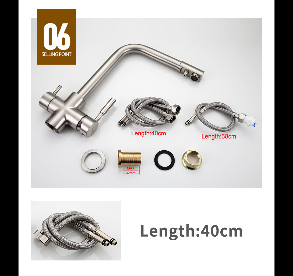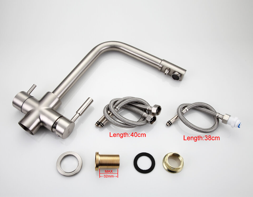 | Плюсы: | Смеситель два в одном. Для водопроводной и фильтрованной воды, разделённые внутри излива. |