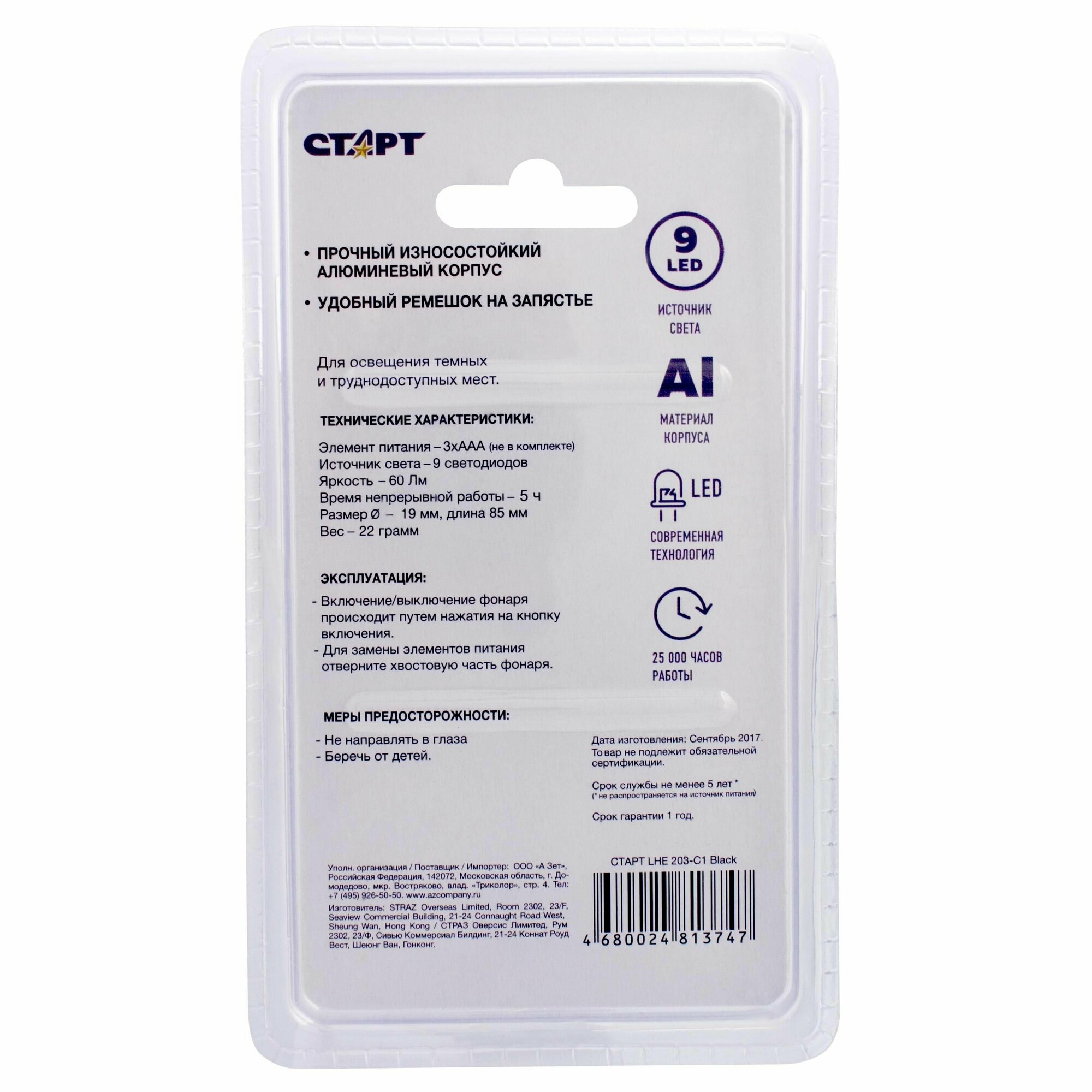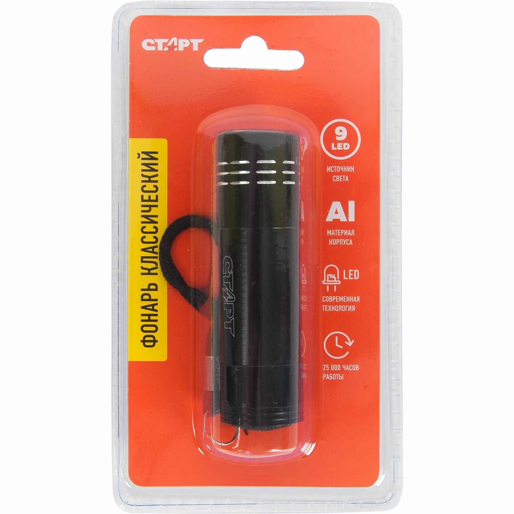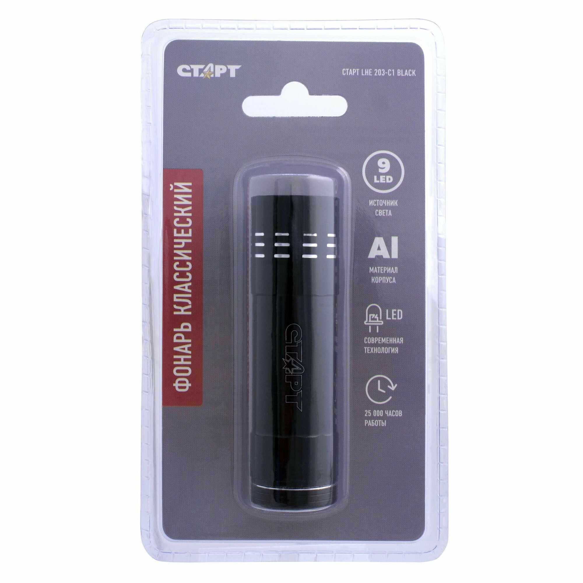 Фонарь светодиодный Старт LHE 203-C1, алюминиевый корпус, 9 LED, черный