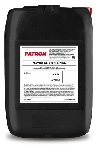 Купить Patron 75W90GL520LORIGINAL Масло трансмиссионное синтетическое 20л 20л-API GL-5, MIL MIL-L-2105 D