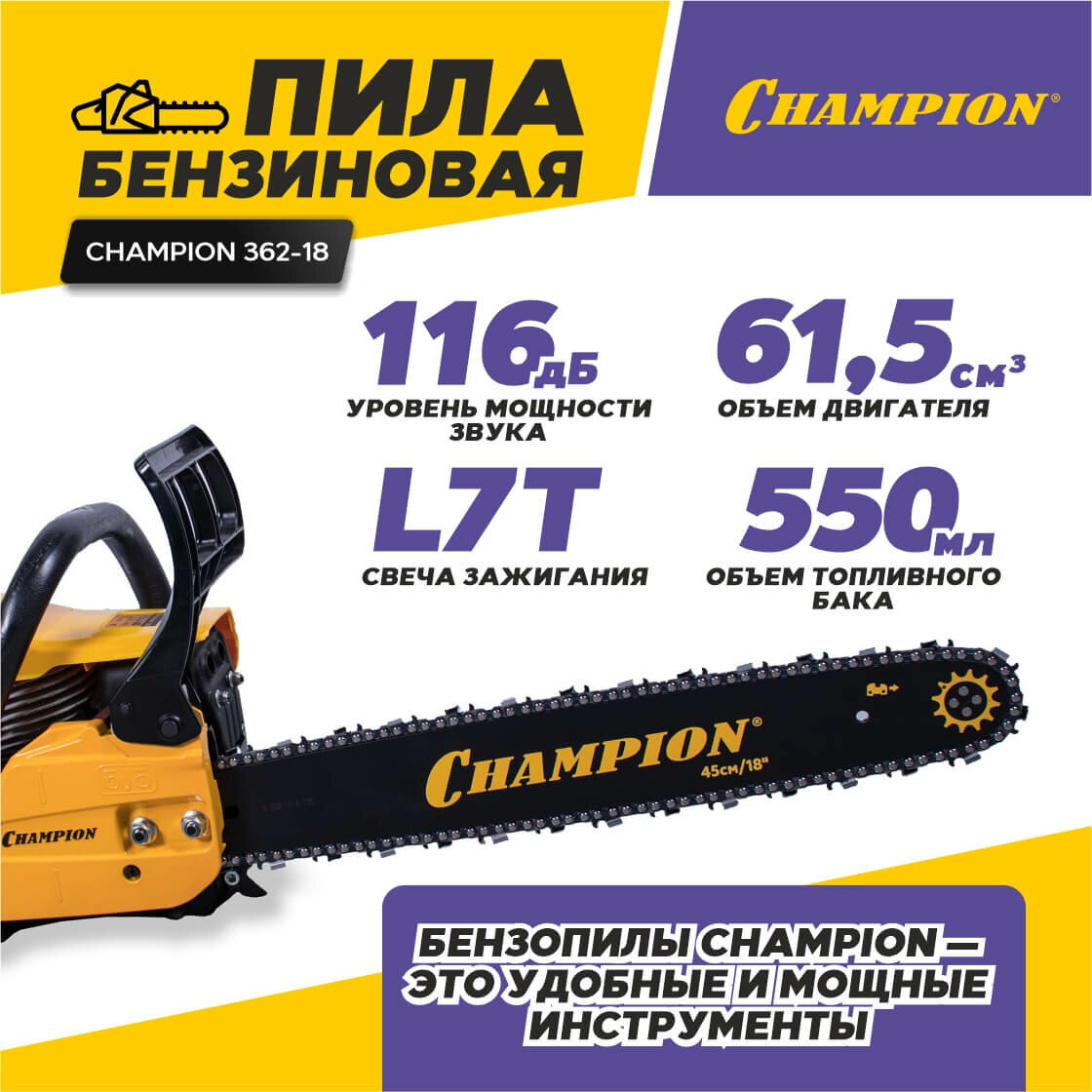Бензопила CHAMPION 362-18, 2.6 кВт