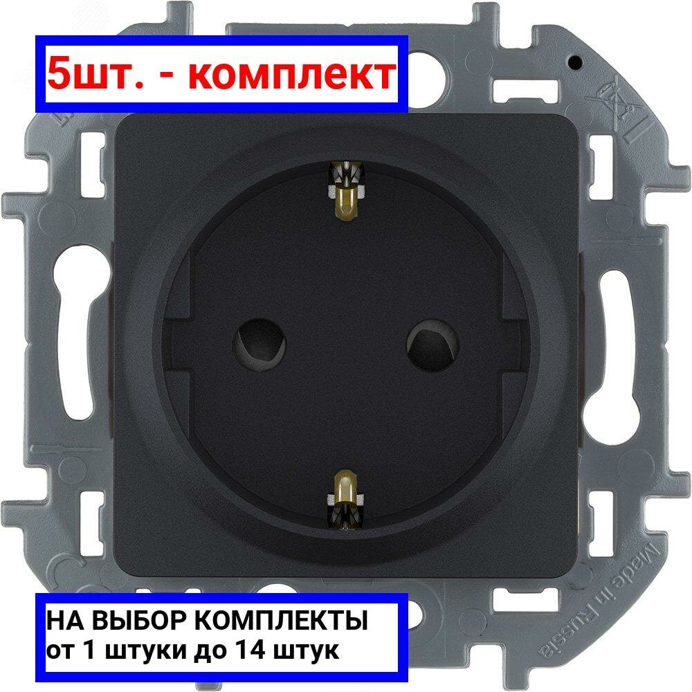 5шт. - Розетка 2К+З со шторками немецкий стандарт 16 А 250 В~ INSPIRIA антрацит / Legrand; арт. 673733; оригинал / - комплект 5шт