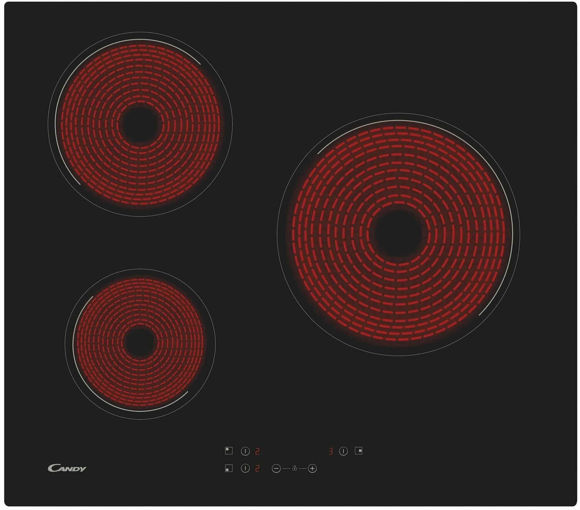 Candy Варочная поверхность Candy CH63CC/4U2, электрическая, 3 конфорки, сенсор, чёрная