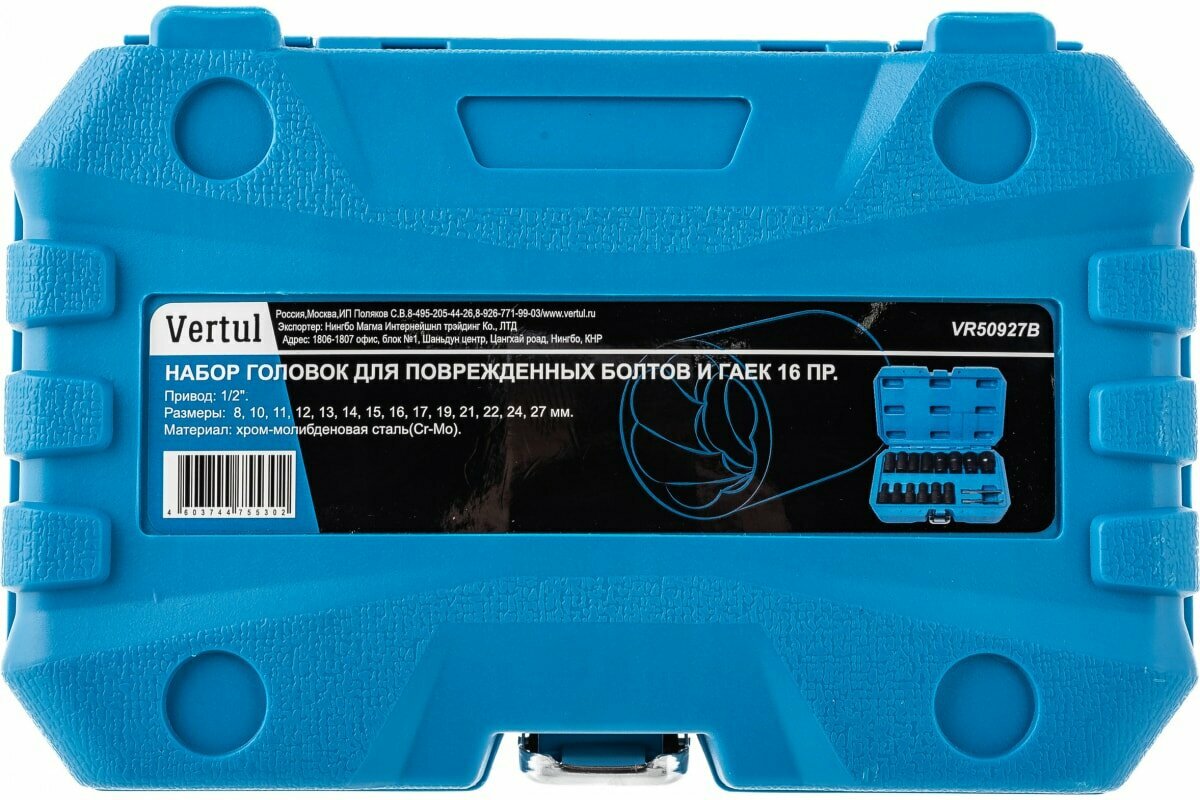 VERTUL VR50927B Набор гоовок дя поврежденных ботов и гаек 16 пр. Vertul