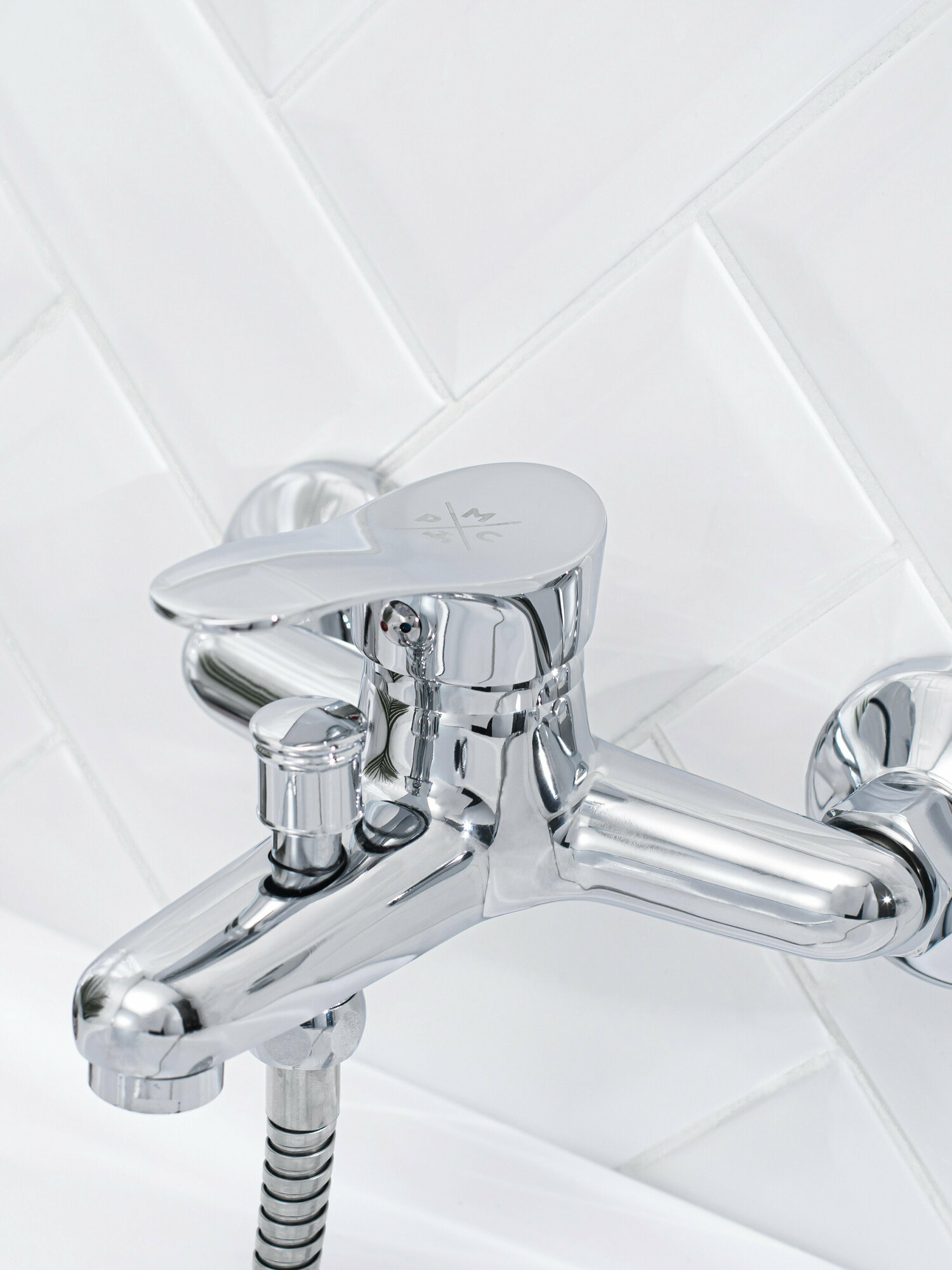 Смеситель для ванны, РМС SL86-009, с литым изливом, с лейкой для душа и шлангом в комплекте, с дивертором