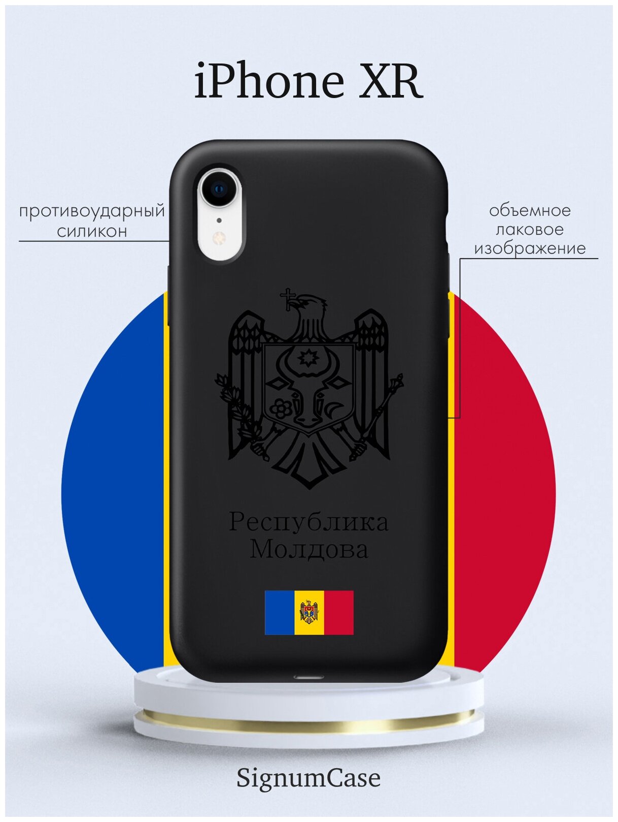 Купить Черный силиконовый чехол для iPhone XR Черный лаковый Герб Республики Молдова/ Герб Молдавии