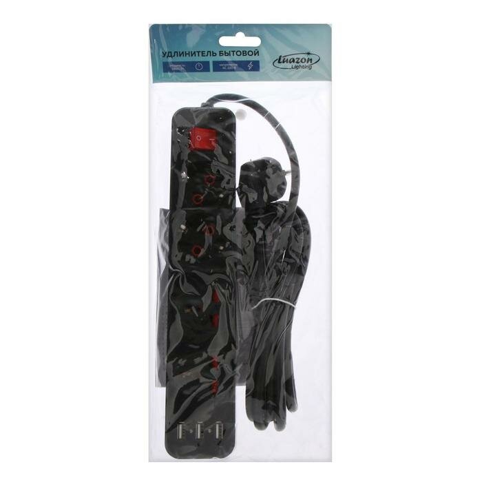 Купить Luazon Lighting Удлинитель Luazon Lighting, 2 евро+2 унив.роз., 5 м, 2200Вт, 2х0.5 мм2, 3хUSB, с выкл., Ч