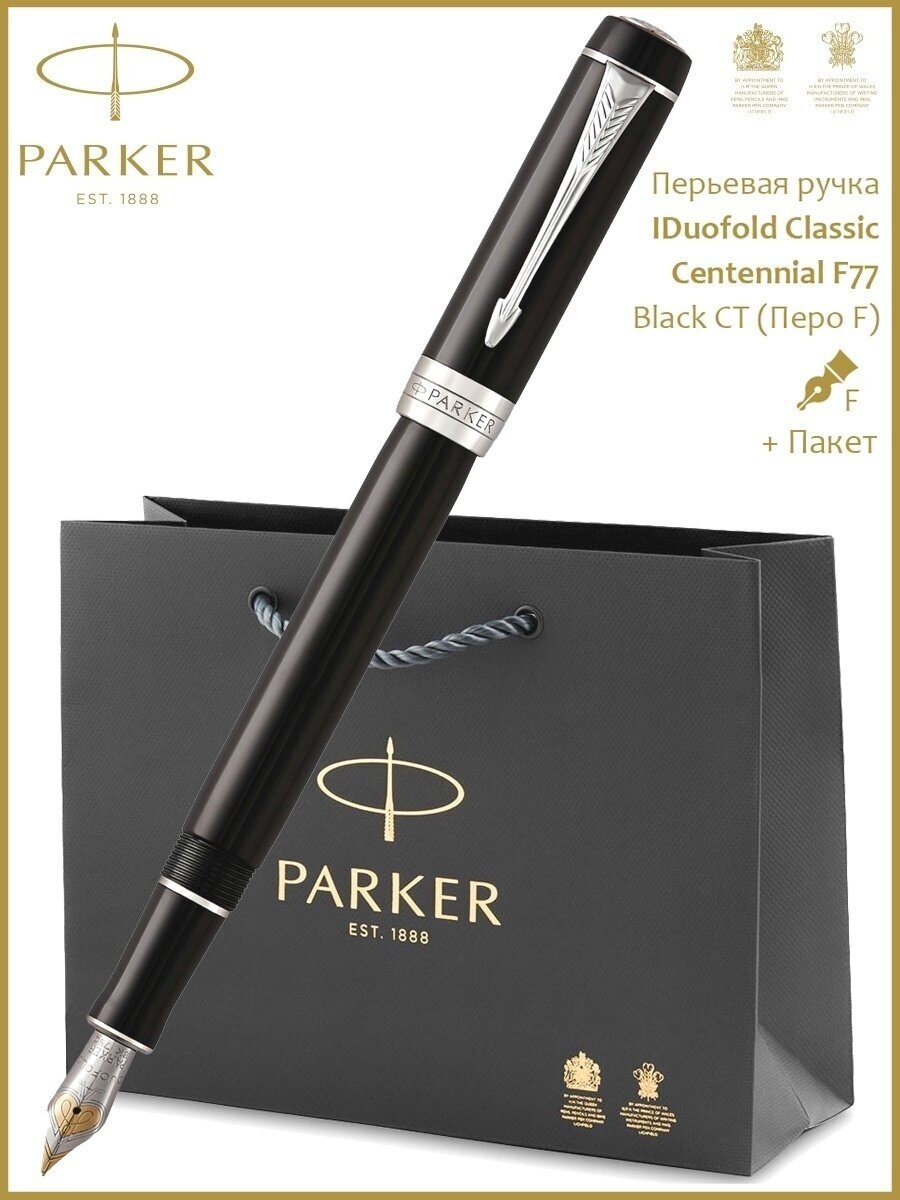 Перьевая ручка Parker Duofold Classic Black CT Centennial Fountain Pen, перо: F, цвет чернил: black, в подарочной упаковке. интересное:
