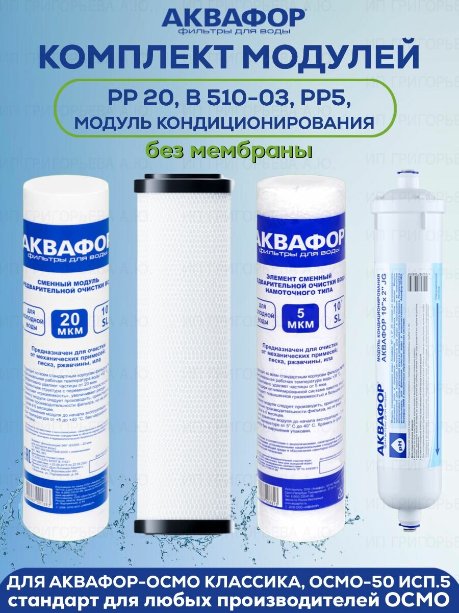 Комплект сменных модулей Аквафор PP20-B510-03-PP5 для осмо Классика (без мембраны) + модуль кондиционирования воды 2 в 1 интересное: