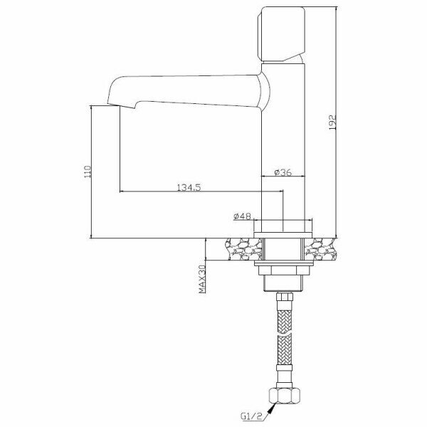 Смеситель для раковины BelBagno UNO-LVM-CRM однозахватный. без донного клапана, хром