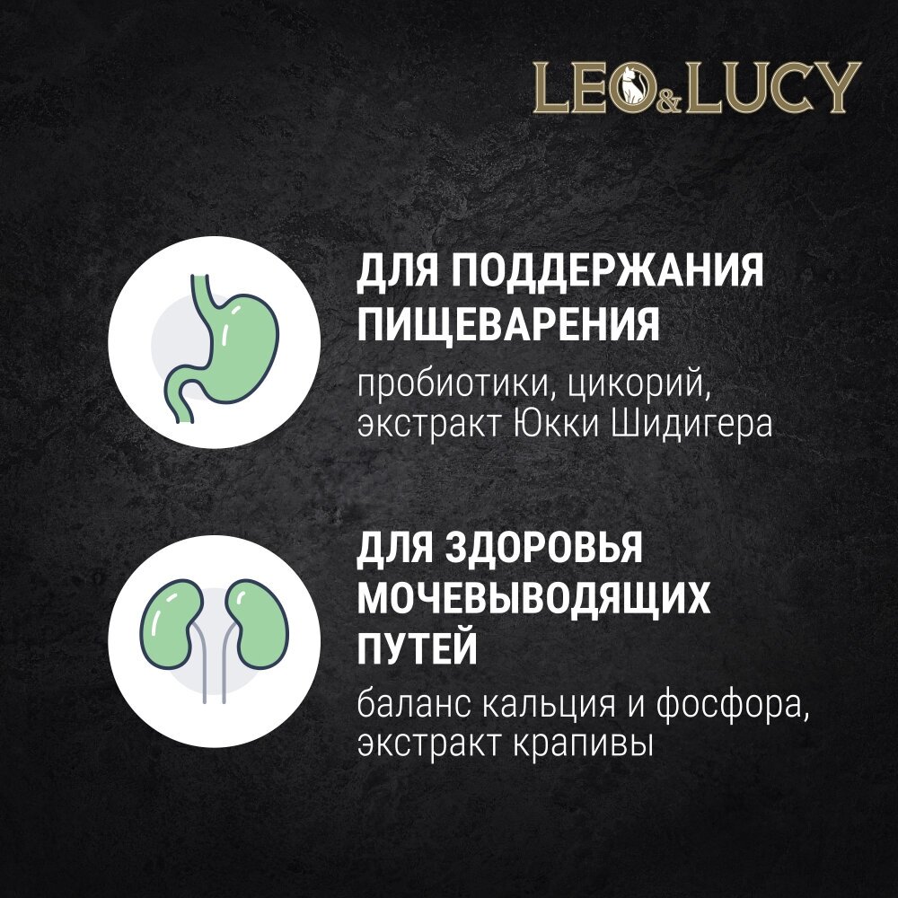 LEO&LUCY сухой холистик корм полнорационный для взрослых кошек с индейкой, ягодами и биодобавками, подходит для стерилизованных и пожилых, 1,5 кг